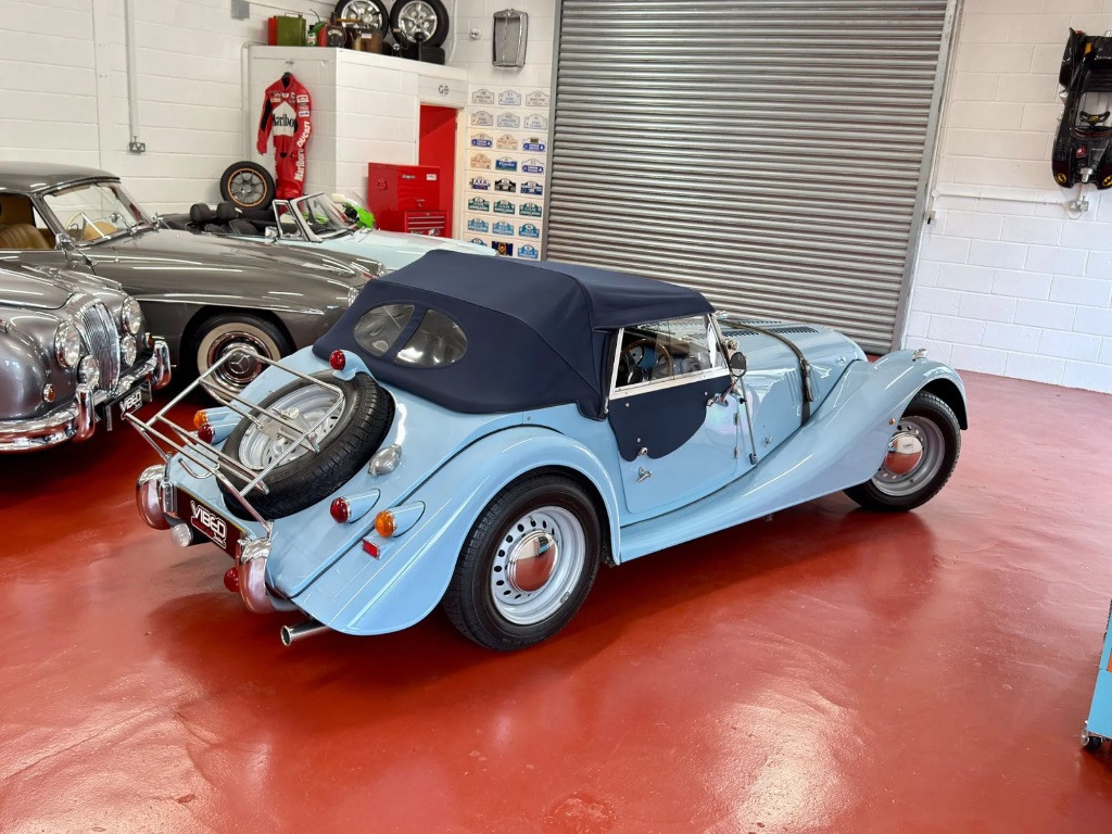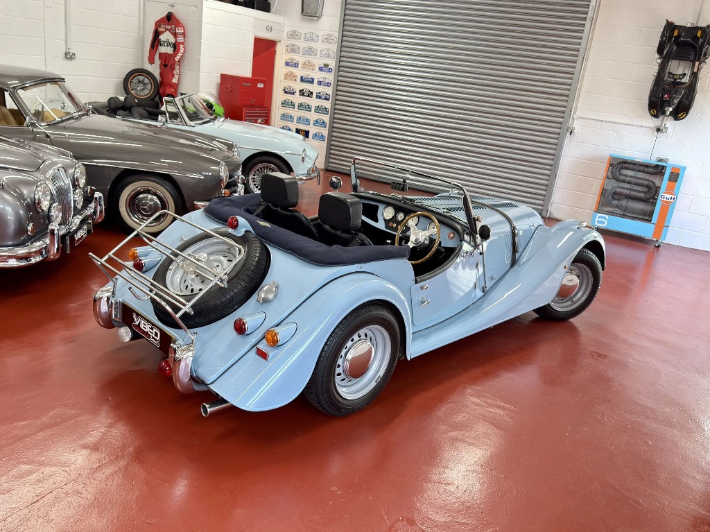 Here we have an opportunity to own a very rare 70th Anniversary Edition Morgan 4/4, in the wonderful colour combination of Duck Egg Blue coachwork, Black leather with a Mohair Navy hood and side screens, a mohair embroidered storage bag, plus matching full and half tonneau covers.