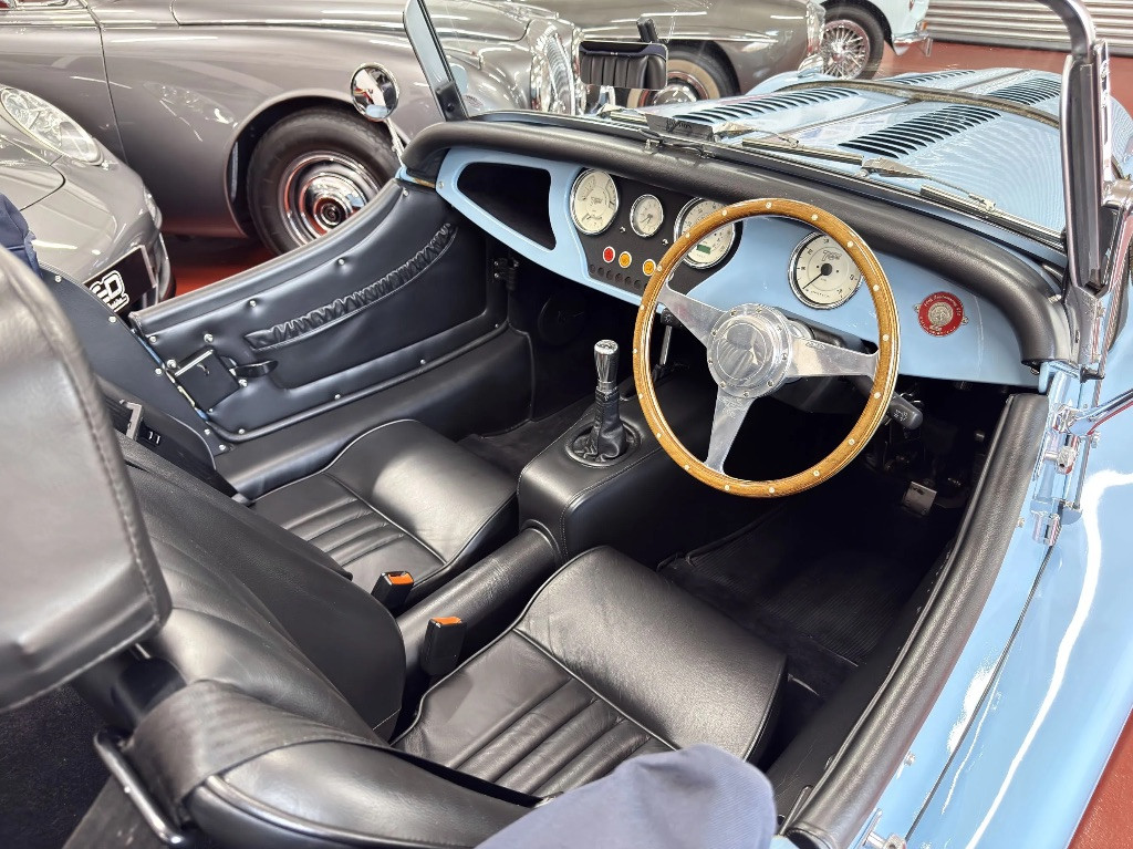 The unique body coloured dash facia is flawless with no marks, displaying the 70th Anniversary 4/4 St. Christopher plaque and special 70th Anniversary Smiths instrumentation.