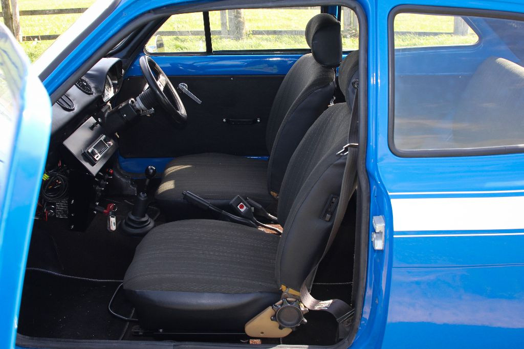 Inside there's a custom dash panel and what look to be the original seats front and rear. Overall it remains a nice place to be.