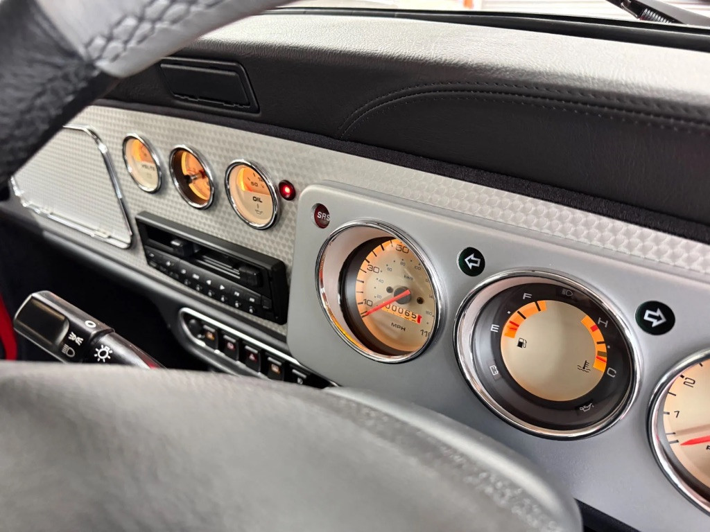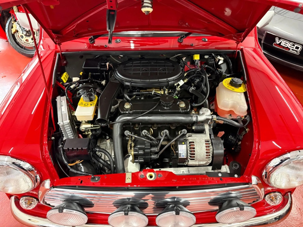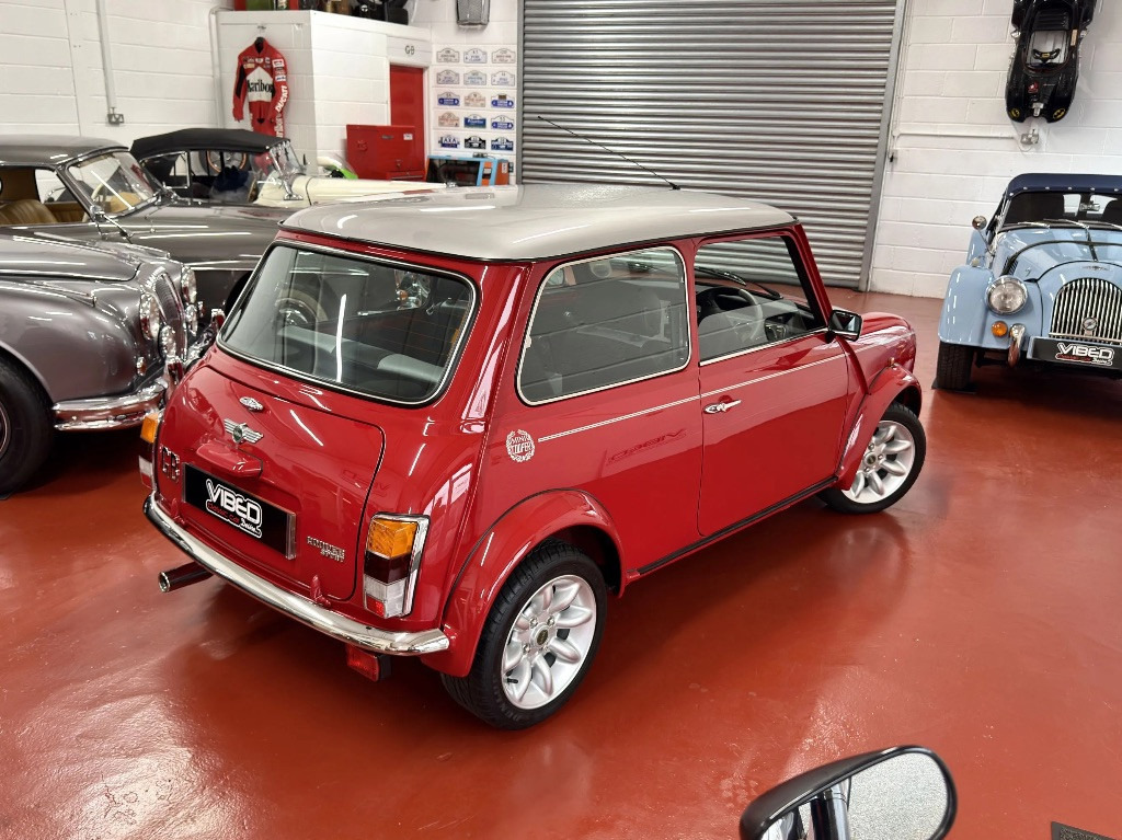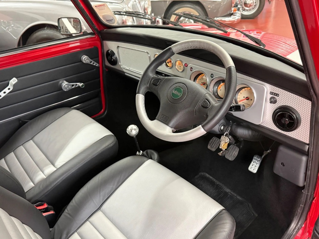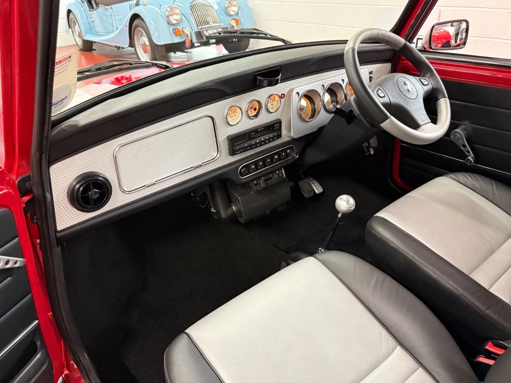 Finished in stunning Solar Red paintwork with platinum silver roof, door mirrors and bonnet stripes. The paintwork is flawless as you would expect from a delivery mileage original example. Complemented by the Cooper Sport silver twin coachline and Cooper decals on the rear wings. Unmarked chrome all round, perfect scratch free tinted original glass with the etched chassis numbers in place on the front and rear screens, plus original D.C. Cook Rover Dealer number plates.