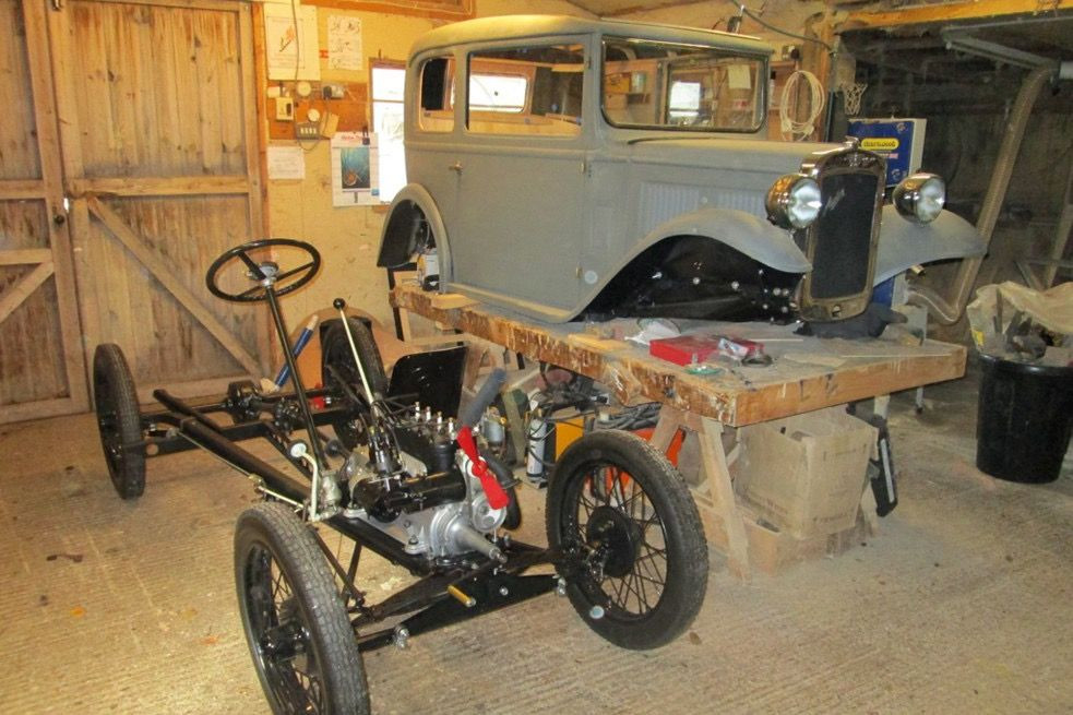Body removed from chassis and completely rebuilt with new ash framing by Martin Prior and Son who finished all body panels with rust preventative primer