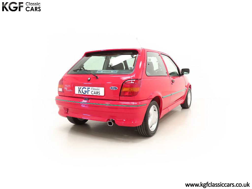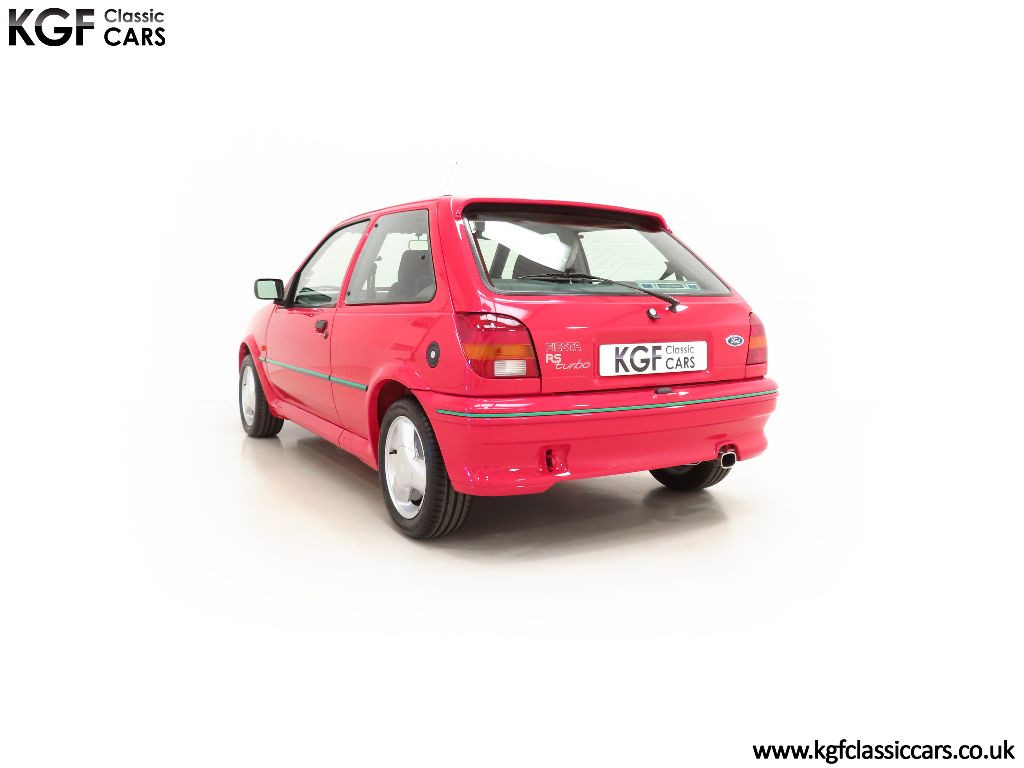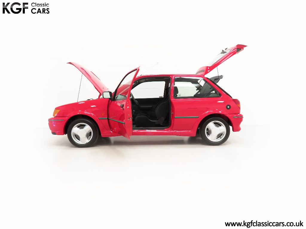 This fantastic example of Ford’s first RS Fiesta was supplied by Ford Main Dealers, Quicks of Chester Limited, on the 8th August 1991 to Lee Robert Hannam. A passionate Ford enthusiast and a member of the RS Owners Club who part exchanged his 1990 Ford Fiesta XR2i against a total purchase price of £12,436, as revealed by the New Vehicle invoice. The fascinating history file reveals everything from the original order, Ford credit agreement, early supplying dealer service invoices and MOT certificates. As Lee also owned a S2 Ford Escort RS Turbo, the Fiesta was taken off the road in August 1996 having covered 3,794 miles and placed in careful storage. Very sadly Lee passed away and ownership transferred to his father, David Hannam in May 2016, with David being only the second recorded keeper. Booked into Ford main dealer Evans Halshaw in August 2016, the vehicle was fully recommissioned before the family made the painful decision to sell the car in 2018 along with the Escort RS Turbo. The vehicle has remained road worthy, with MOT records since and a major service and cambelt change carried out in March 2026. Supplied with all handbooks, service book and a full complement of keys. An A4 folder contains all chronically filed documents with a new car sales brochure and magazine road test from the period. With a short production of just two years from 1990 to 1992, prior to the introduction of the Fiesta RS1800, this represents a truly rare RS Ford and undoubtedly one of the best, unmolested examples in existence.