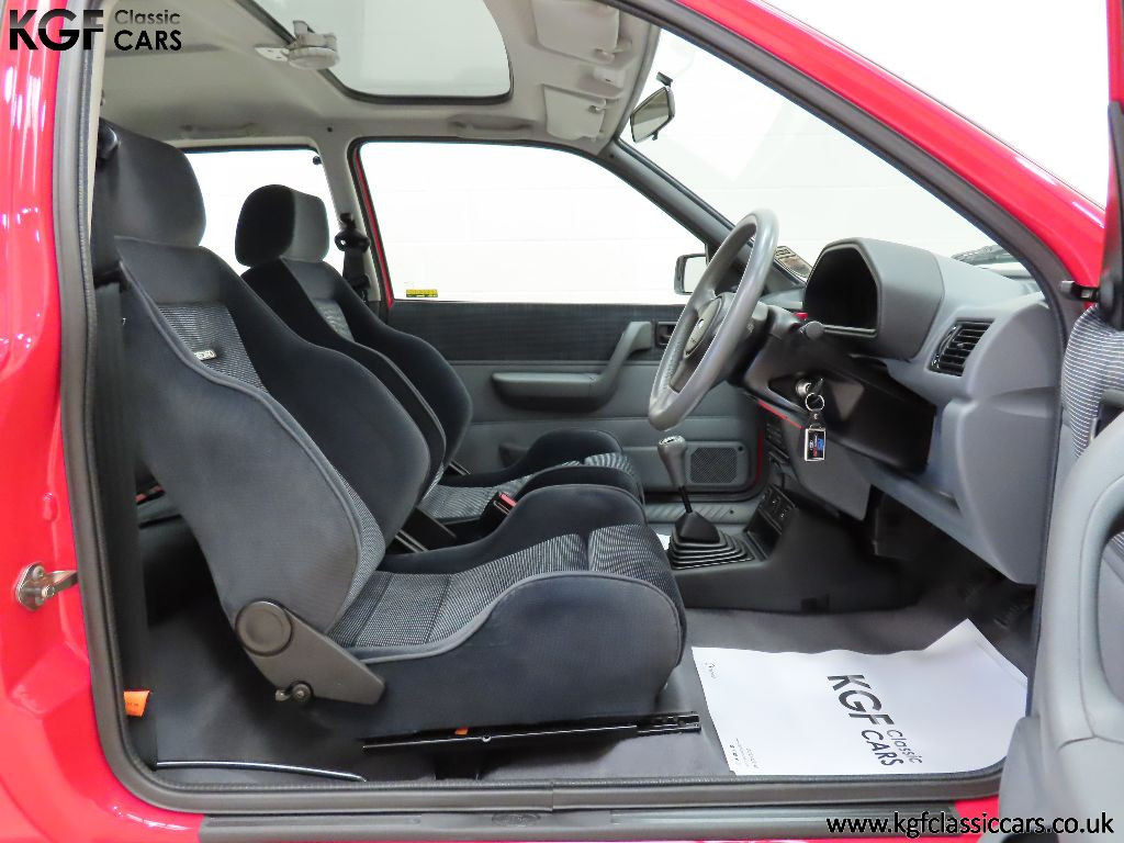 Finished in lustrous Ford Radiant Red, (Code P1), this incredible example has an amazing deep gloss shine preserved from years of enthusiast ownership and careful storage. All the trim and rubbers are as new and reflect the uber low mileage. All Ford glass is chassis etched and the Valeo and Hella lights are correct fitment. There is a small touched-in mark to the front bumper corner. The factory decals and vibrant green insert remain in pristine condition and supplying Ford main dealer number plates, rear screen sticker and tax disc holder remain fitted. The performance character is clearly expressed in the styling and those enjoying the concours show circuit will appreciate the factory fresh underside and spotlessly clean wheel arch apertures. Suitable for the most discerning and fastidious collector seeking a totally unmolested and very rare Fiesta RS Turbo. Surely the best?