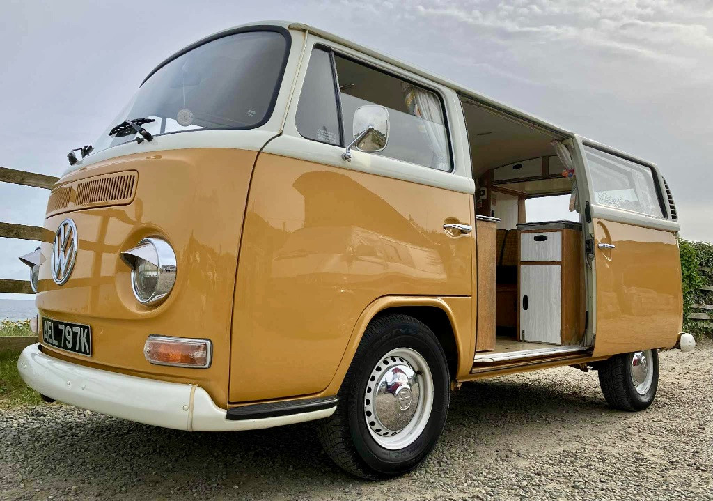 VW T2 Iconic early Bay Devon Moonraker yellow 1972 Summer of Love bus. For Sale