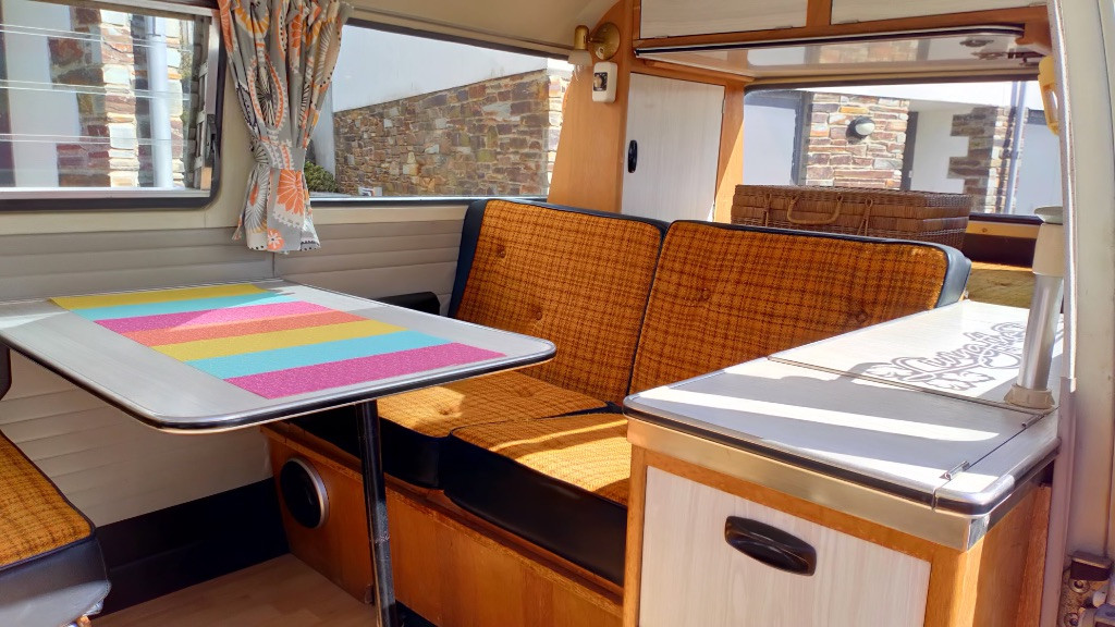 Velma is a unique time-warp and is in fantastic condition inside and out with her original 1970's interior! High & low double & single bed, swing out original gas cooker with canopy, sink, fridge & wardrobe!