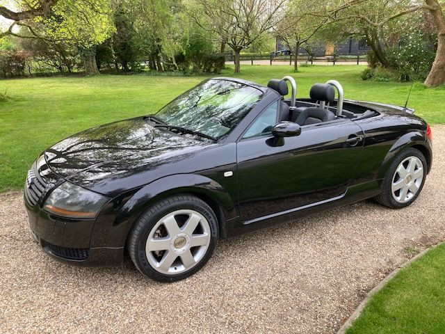 2001(X) Audi TT MK1 Quattro Roadster 225 BHP. Metallic Black with Black leather and new Black Mohair power hood. Desirable 6-speed manual, power steering, ABS braking, traction control, automatic climate control, heated seats, electric windows and mirrors, factory alloy wheels, air-bags, Audi Concert radio cassette with CD changer, headlamp wash, remote central locking with 2 keys. Only 63,000 miles from new with full documented service history and all original handbooks. Just had the timing belt and water pump changed within the last 1000 miles. Extremely nice and all original car, starting to get very collectible now.
