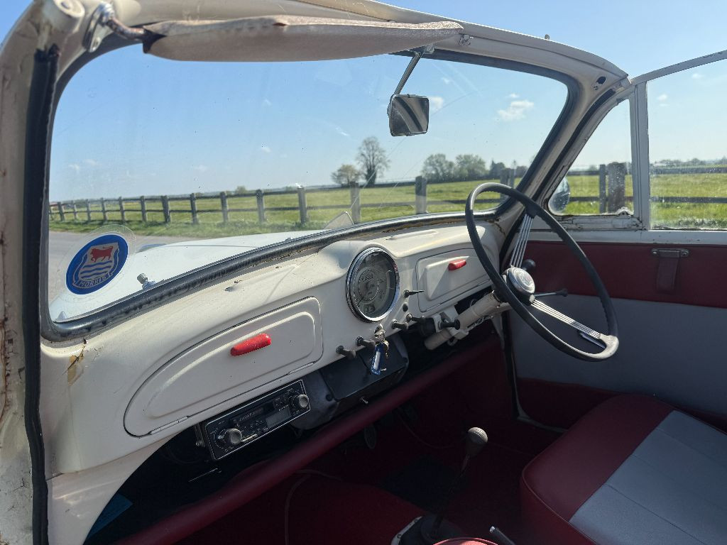 First registered in 1958 this later ""1000"" Minor was originally a standard saloon that has been converted to the desirable convertible form. It presents in OK form but the bodywork is looking tired and has some general blemishing and bubbling throughout that could be improved upon. Having been standing for some time the interior could benefit from a freshen up. The soft top roof unlatches and folds comfortably though there is a small tear at one of the rear fasteners.